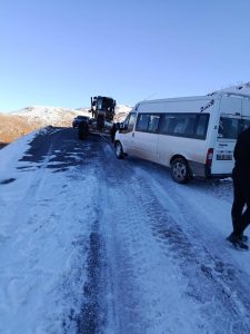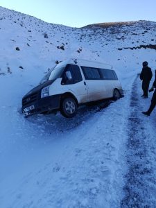 Siirt’in Pervari ilçesine bağlı Cemekare Yaylası’nda seyir halindeki yolcu minibüsü, yoğun kar yağışı nedeniyle kontrolden çıkarak şarampole yuvarlandı. Direksiyon hâkimiyetinin kaybedilmesi sonucu meydana gelen kazada, minibüste bulunan 5 kişi yara almadan kurtuldu. Olayın ihbar edilmesi üzerine bölgeye Siirt İl Özel İdaresi Karla Mücadele Ekipleri sevk edildi. Ekipler, yaptıkları çalışma sonucu şarampole yuvarlanan minibüse ulaşarak aracı bulunduğu yerden kurtardı. Kazayla ilgili herhangi bir can kaybı ya da yaralanma yaşanmadığı öğrenildi.