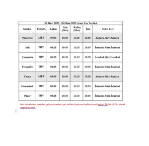 30 Mart 2025 – 26 Ekim 2025 tarihleri arasında geçerli olacak yaz tarifesine göre Siirt Havalimanı’ndan haftanın her günü düzenli uçuşlar gerçekleştirilecektir.