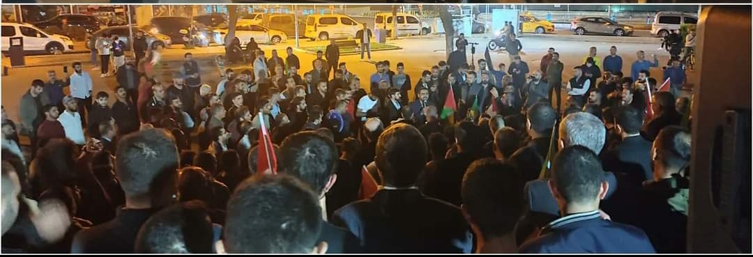 Kalabalık grup İsrail’e lanet okurken, Filistin’e de destek sloganı attı.