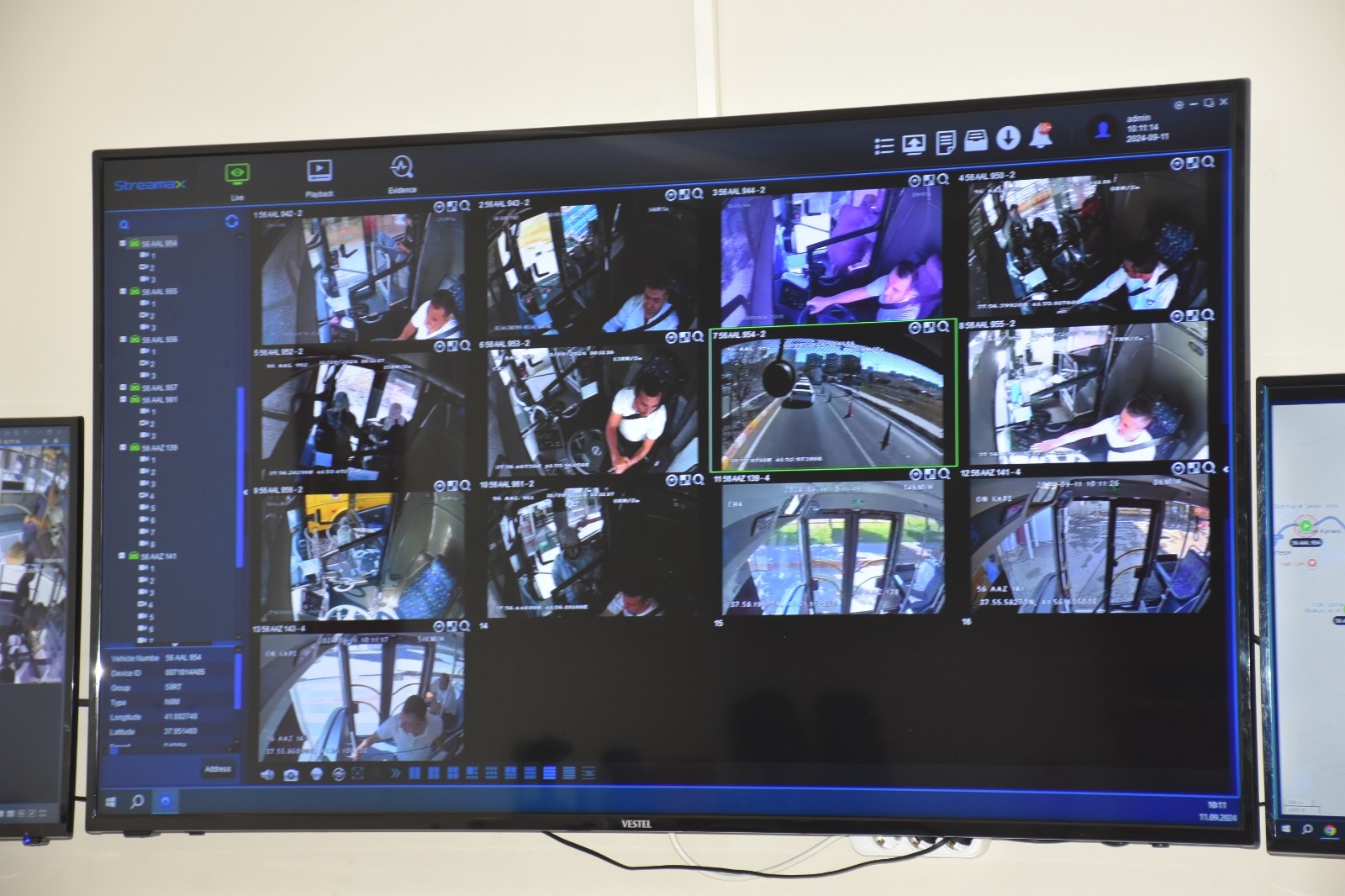 Toplu taşıma araçlarımızın her bir köşesini görebilen kameralar sayesinde, şehir genelindeki seyahatler daha güvenli hale getiriliyor. Yolculuklar sırasında otobüslerin içerisindeki ve dışındaki her türlü olay, Ulaşım Hizmetleri Müdürlüğü Sistem Odası personeli tarafından canlı olarak izleniyor ve kaydediliyor. Bu sayede olası kavgalar, tacizler ve diğer güvenlik sorunları anında tespit edilerek çözüme kavuşturulabiliyor.