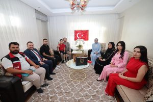 Ziyarette şehitlerimizin kıymetli aileleriyle bir araya gelen Vali Kızılkaya, “Aziz şehitlerimizi rahmet ve şükranla anıyorum. Şehitlerimizin ailelerine Cenab-ı Allah’tan sabır diliyorum.” ifadelerini kullandı.