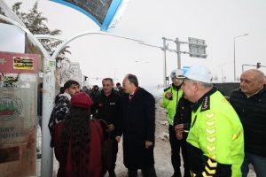 Siirt Valisi ve Belediye Başkan Vekili Dr. Kemal Kızılkaya, il genelinde etkisini sürdüren kar yağışı nedeniyle Siirt–Kurtalan Karayolu Kezer yerleşkesinde yürütülen karla mücadele çalışmalarını yerinde inceleyerek denetimlerde bulundu. Sahada görev yapan ekiplerden yürütülen çalışmalar hakkında detaylı bilgi alan Vali Kızılkaya, bölgede bulunan üniversite öğrencileriyle de bir araya gelerek sohbet etti, taleplerini dinledi ve öğrencilere destek oldu. Karla mücadele çalışmalarına ilişkin değerlendirmelerde bulunan Vali Kızılkaya, vatandaşların güvenli ulaşımı ve sağlığının öncelikleri olduğunu vurgulayarak, “Karla mücadele kapsamında ilimiz genelinde 200 araç ve 600 personelimizle 7/24 esasına göre görev yapıyoruz. Yol güvenliğini sağlamak için çalışmalarımız kesintisiz şekilde sürdürülmektedir.” dedi. Vali Kızılkaya, kar ve buzlanma riskine karşı vatandaşları dikkatli ve tedbirli olmaya davet etti. İncelemeler sırasında Vali Kızılkaya’ya; Vali Yardımcısı Birkan Tatlısöz, İl Emniyet Müdürü Necmettin Öztürk ile belediye, Karayolları, İl Özel İdaresi ve AFAD yetkilileri eşlik etti.